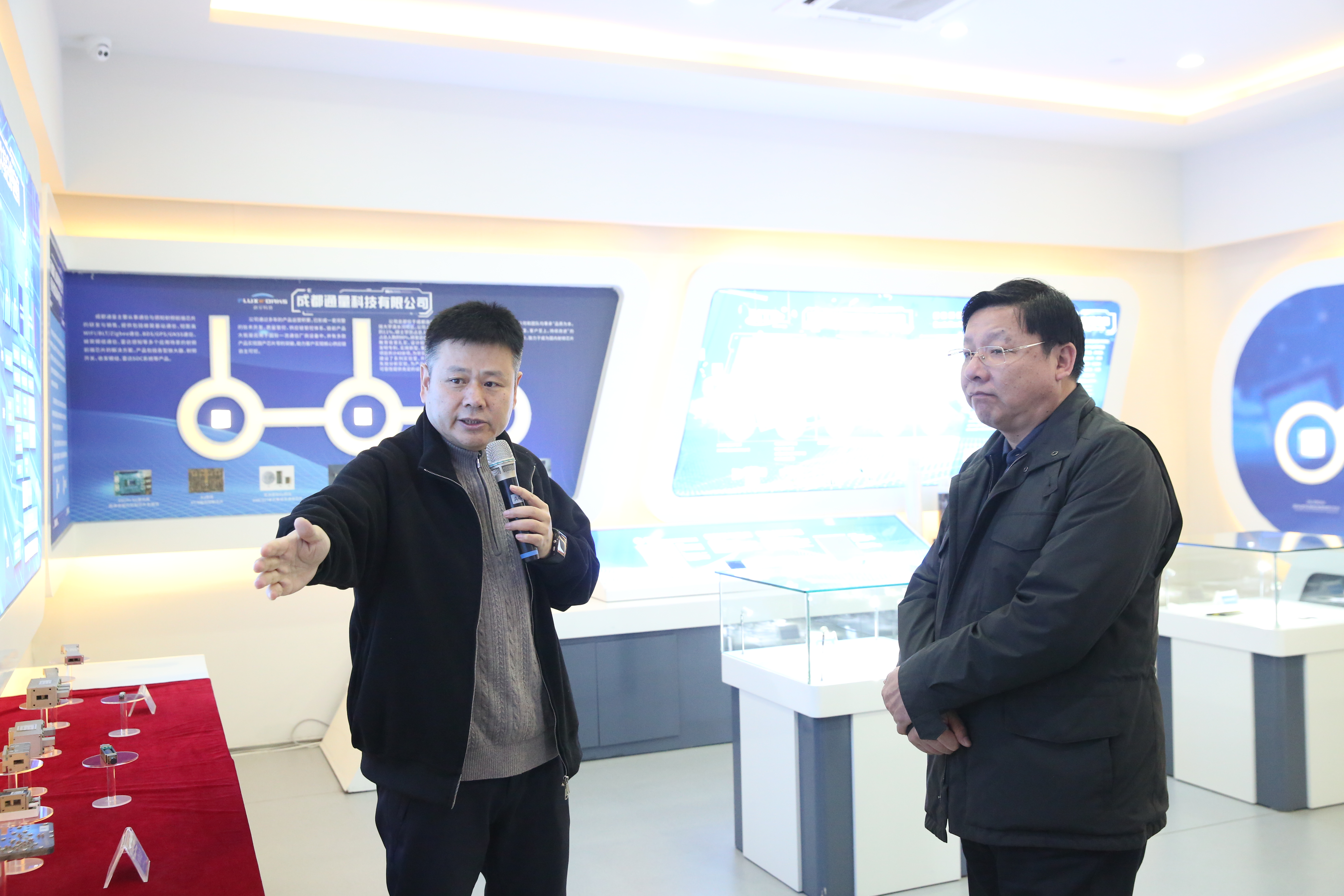 張華維一行先后參觀了天和防務(wù)文化展廳和產(chǎn)品展廳,周磊詳細(xì)介紹了公司生產(chǎn)經(jīng)營(yíng)、技術(shù)研發(fā)、產(chǎn)業(yè)布局等情況,并重點(diǎn)匯報(bào)了公司在5G射頻、低空經(jīng)濟(jì)、應(yīng)急裝備、大數(shù)據(jù)和云脈健康等相關(guān)業(yè)務(wù)。在天和云脈產(chǎn)品展區(qū),王超介紹了天和云脈健康監(jiān)測(cè)腕表的各項(xiàng)功能與特性,代表團(tuán)成員在實(shí)際體驗(yàn)后表示出濃厚興趣。